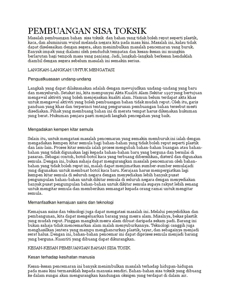 Urus Sisa Toksik Lebih Baik Utusanonline Mindarakyat
